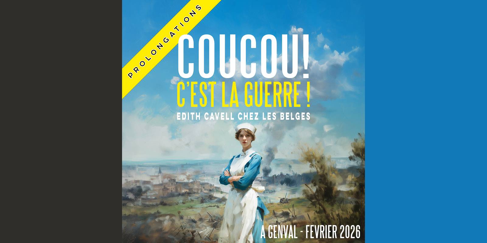 « Coucou C'est La Guerre ! Édith Cavell chez les Belges ! » revisite, avec humour et émotion, une page méconnue de l'histoire belge. Inspiré du destin d'Édith Cavell, infirmière héroïque de la Première Guerre mondiale, il propose une traversée déjantée de notre pays. Sur scène, quatre interprètes et un musicien s'emparent de l'Histoire belge comme d'un terrain de jeu. Dans une performance effrénée, ils sautent d'un rôle à l'autre, croisent d'autres figures reléguées dans les marges. Entre road movie scénique et comédie musicale, le spectacle mêle chansons en live, rythmes entraînants et scènes théâtrales pleines de fantaisie. L'objectif : redonner vie à des personnes qui ont marqué l'Histoire, mais dont les récits ont été effacés.