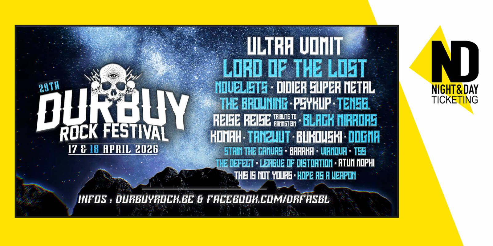 29th Durbuy Rock Festival, Wallonia Metal Meeting, April 17 & 18, 2026 in Bomal-sur-Ourthe (Durbuy), Belgium.