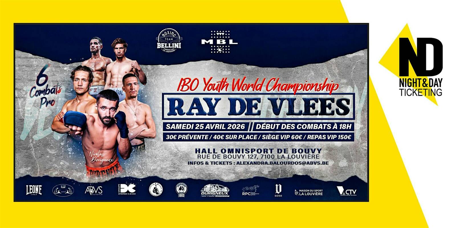Gala de Boxe Ray de Vlees - Samedi 25 avril 2026
