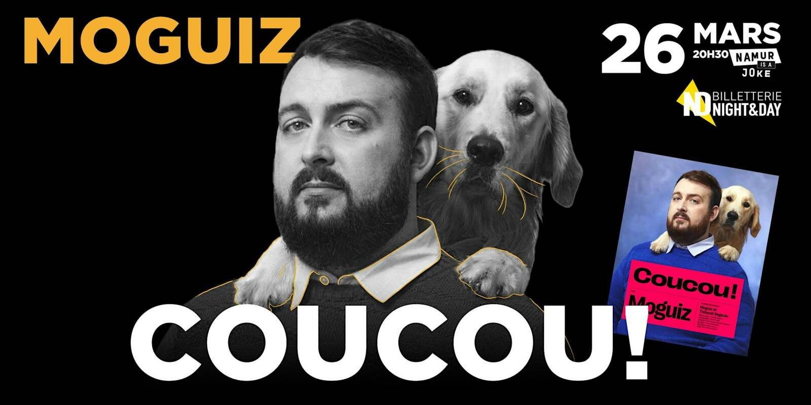 Namur is a joke, en accord avec RUQ spectacle, présente MOGUIZ – Coucou !