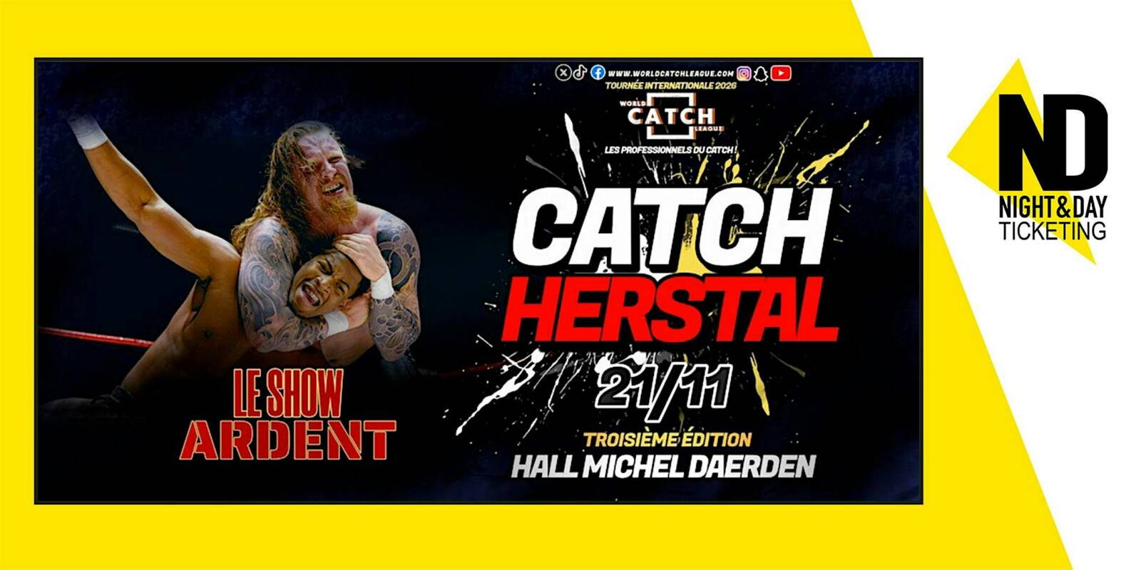Les catcheurs professionnels de La World Catch League poseront leurs valises, pour la TROISIÈME année consécutive, à HERSTAL, le 21/11 au HALL MICHEL DAERDEN pour deux heures de spectacle sportif qui feront vibrer petits et grands.